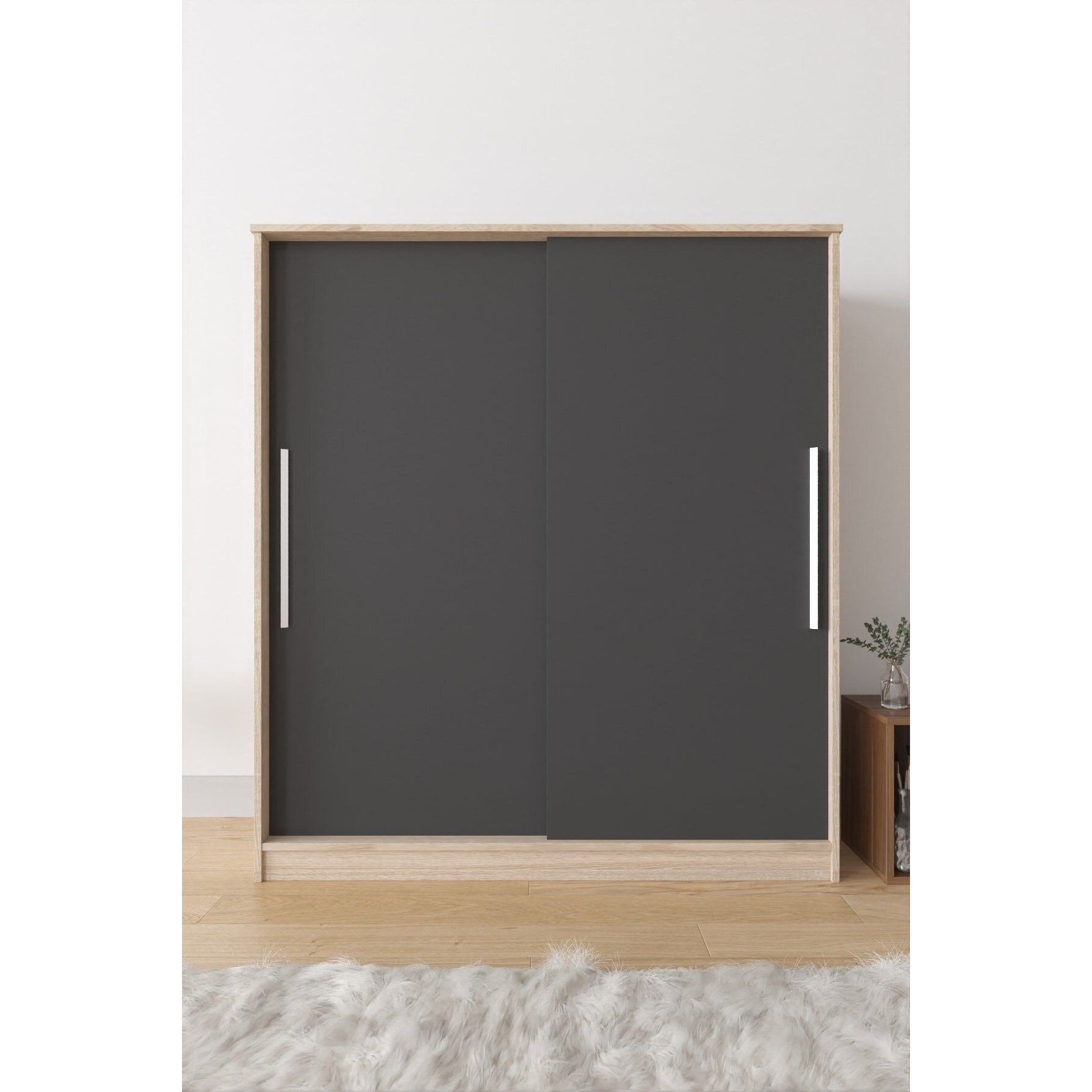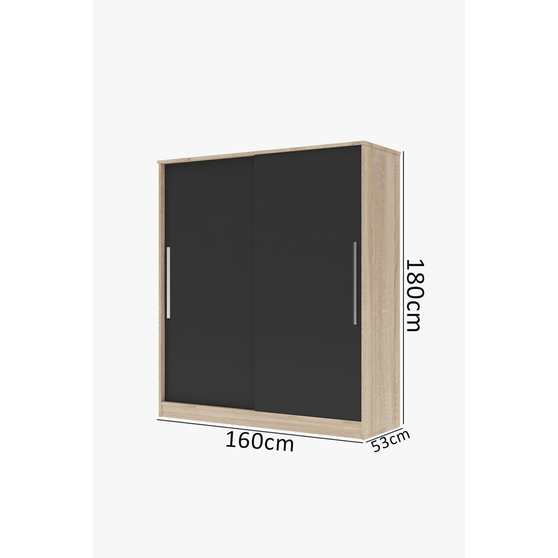 Zambak Freestanding Minimalist Sliding Sonomo Wardrobe with 11 Shelves 2 Drawers & Hanger-Dark Gray for Narrow Spaces